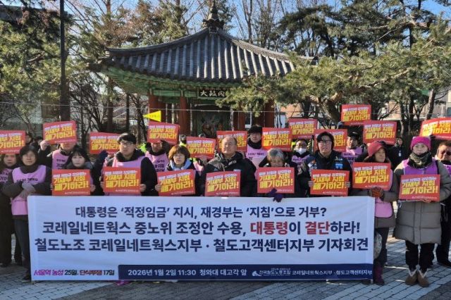 지부는 "정부가 만든 지침이 정부기구인 중노위 조정안조차 무력화하는 모순적 상황을 대통령이 직접 해결해야 한다"며 △코레일네트웍스의 중노위 임금 조정안 수용 △기재부 총인건비 지침 개선 및 예외 인정 등에 대한 이 대통령의 결단을 촉구했다.