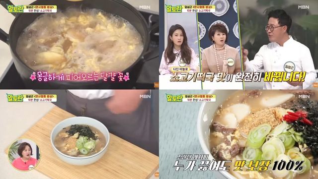 임 셰프가 공개한 소고기 떡국의 핵심은 달걀을 활용하는 방식에 있었다. 그는 "달걀을 지단이나 수란으로 하는 분들이 있는데, 저는 줄알치기를 한다"며 먼저 준비한 달걀 2개를 풀었다. 이때 중요한 점은 푼 달걀을 뜨거운 물에 한꺼번에 붓지 않는 것이다.