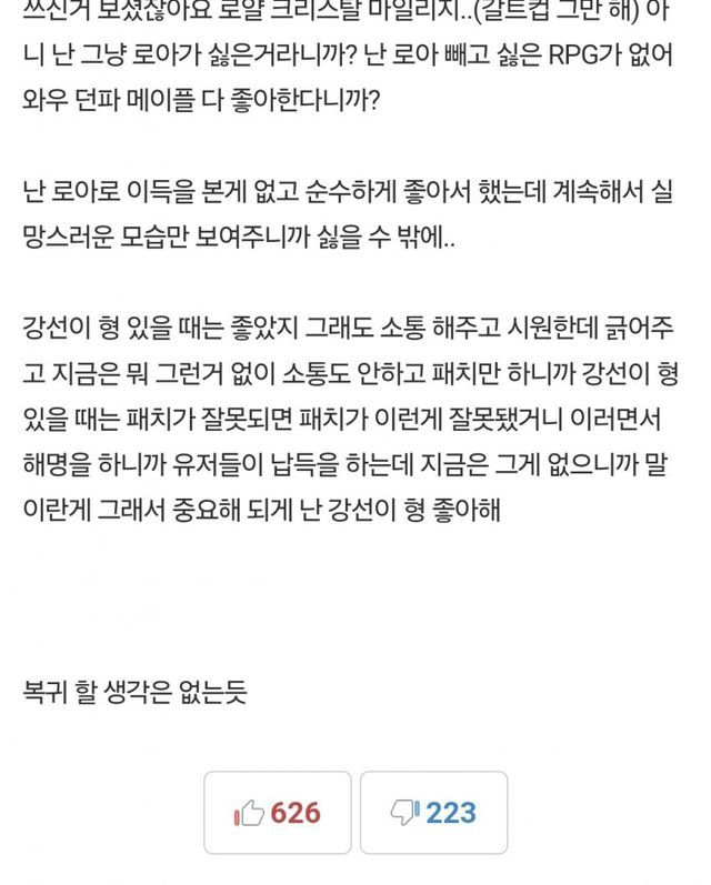 대한민국 알피지 섭종까지 어떤겜도 집나간 쌀값과 니가 쓴 돈은 돌아오지않는거 팩튼데