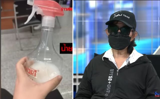 두 살배기 아기 우유병에 소독액을 넣은 태국의 가사도우미가 생방송에서 해명 인터뷰를 하던 중에 경찰에 체포됐다.
