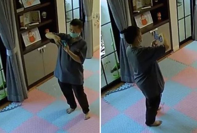 레누카 가족은 귀가 후에 CCTV 영상을 확인했고 거기에는 충격적인 장면이 담겨있었다. A 씨가 아기 우유병에 청소용 소독제를 붓는 모습을 확인한 것이다.