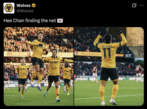 4일 자정(한국시간) 영국 울버햄턴의 몰리뉴 스타디움에서 2025-2026 잉글랜드 프리미어리그(PL) 20라운드를 치른 울버햄턴이 웨스트햄에 3-0 완승을 거뒀다. 울버햄턴은 승점 6점으로 리그 20위, 웨스트햄은 승점 14점으로 리그 18위에 머물렀다.