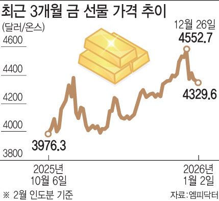현물 금 가격은 지난달 26일 장중 온스당 4550달러까지 치솟아 사상 최고치를 기록한 뒤 이후 조정을 받았다.