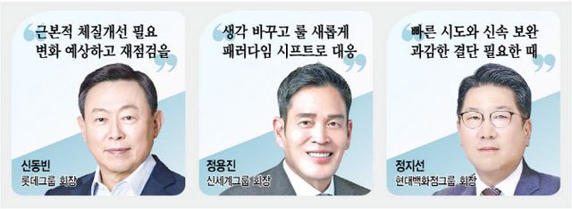 4일 유통업계에 따르면 신동빈 롯데그룹 회장·정용진 신세계그룹 회장·정지선 현대백화점그룹 회장 등 국내 빅3 유통그룹의 총수들은 2026년 신년사를 통해 공통적으로 민첩경영과 본원 경쟁력 강화를 강조했다. 불확실성이 일상화된 시대로 접어든 만큼 유통업계가 이전처럼 관행에 기대거나, 변화없이 사업을 운영해서는 성장은 커녕 생존도 힘들다는 경고의 메시지다. 유통업계를 대표하는 총수 3명의 메시지가 이처럼 비슷한건, 최근 국내 업체들이 처한 현실이 녹록지 않다는 의미다.