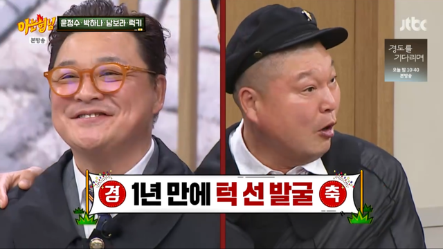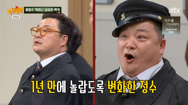 이날 멤버들은 1년 만에 다시 등장한 윤정수의 달라진 모습에 놀라움을 드러냈다. 강호동은 “작년 2월에 나왔을 때와 비교하면 살이 많이 빠졌다”고 말하며 변화를 짚었다.