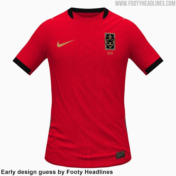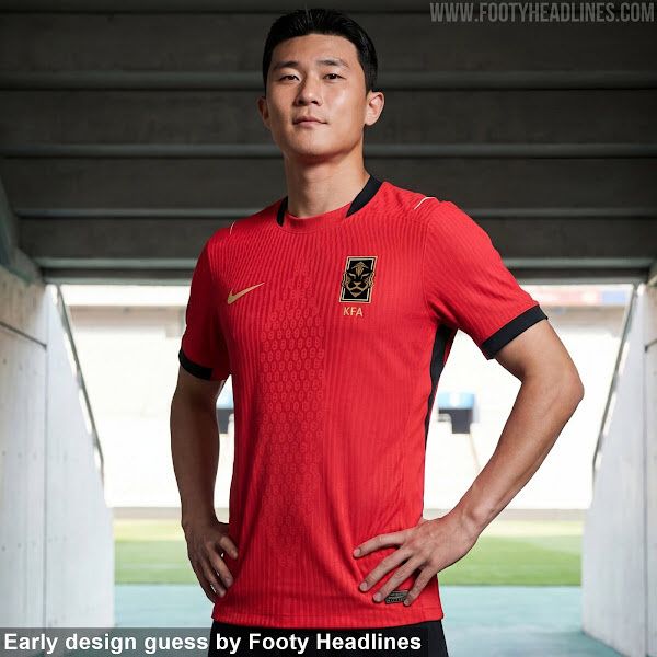 ‘풋티 헤드라인스’에 따르면 이번 월드컵에 나서는 한국 유니폼은 나이키의 ‘글로벌 레드’ 콘셉트를 기반으로 금색 디테일이 더해질 예정이다. 매체가 유출된 정보를 토대로 시각화한 이미지를 보면 한국의 전통적인 색상인 빨간색 바탕에 팔 소매와 목둘레, 옆구리 부분에 검은색이 가미된 게 포인트다.