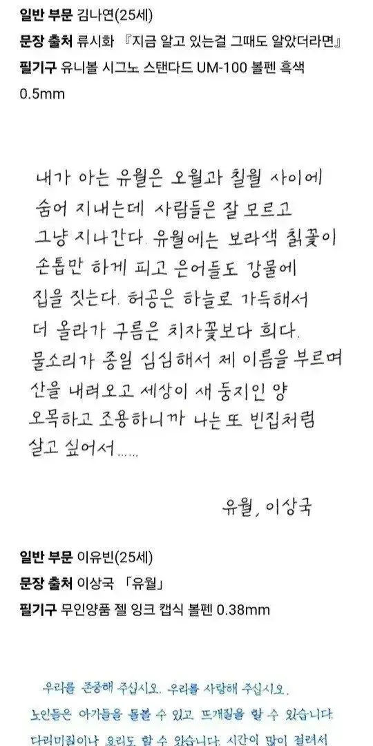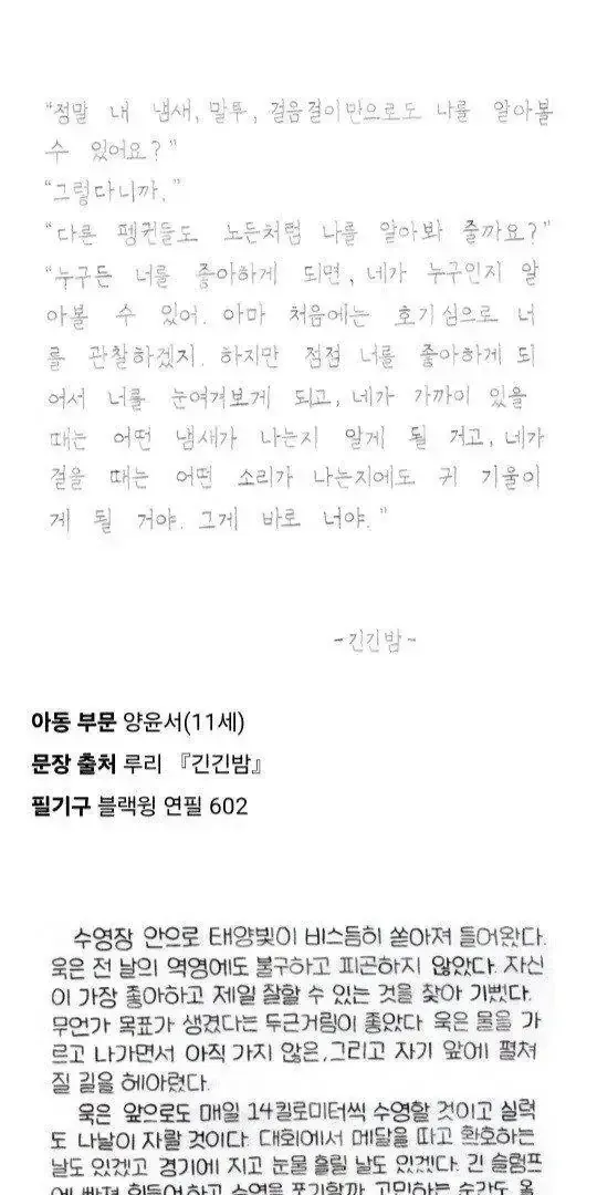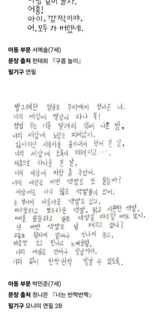 교보문고 손글씨 대회 수상작
