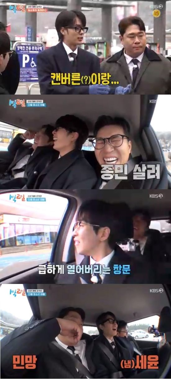 뒷자리에 걸린 문세윤은 김종민, 유선호와 함께 몸이 구겨진 상태로 앉더니 순간 방귀를 뀌고 말았다. 문세윤은 "힘들어서 나왔어"라고 머쓱하게 말했다.