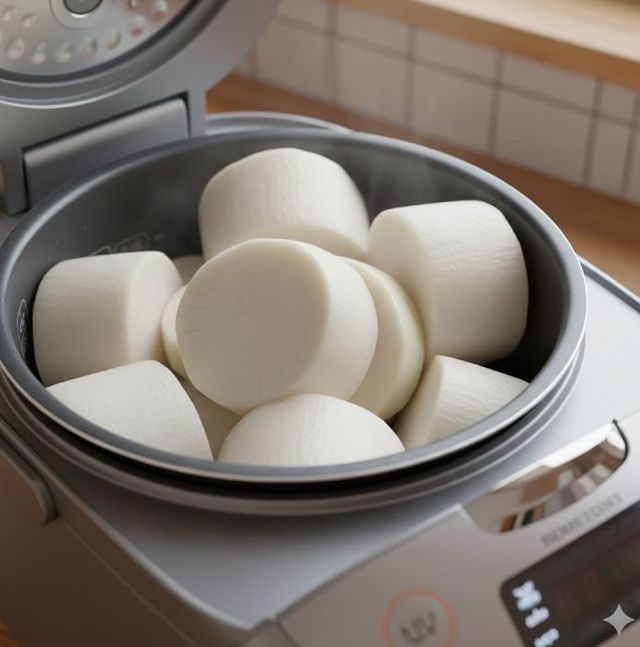 취사 버튼을 누르고 기다리는 동안 특별히 할 일은 없다. 밥솥 안에서는 무가 서서히 익으며 간장을 빨아들인다. 조리가 끝나고 뚜껑을 열면 무는 색이 진하게 변해 있고, 국물은 맑으면서도 진한 향을 낸다. 이 상태에서 바로 먹어도 좋지만, 한 번 더 보온 상태로 두면 맛이 훨씬 안정된다. 무조림은 식으면서 더 맛있어지는 반찬이기 때문이다.