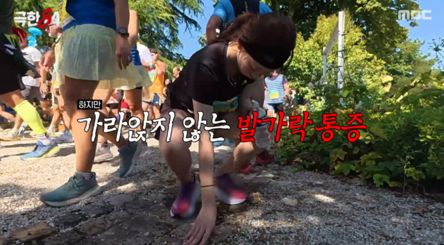 결국 14km를 남겨두고 발가락 통증으로 멈춰 선 츠키는 물을 마시며 마음을 다잡았다. 기안84는 “신발을 딱 맞는 걸 신었나보다 조금 큰 걸 신어야 하는데”라며 안타까움을 표했다.