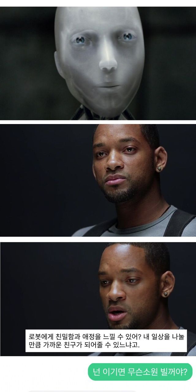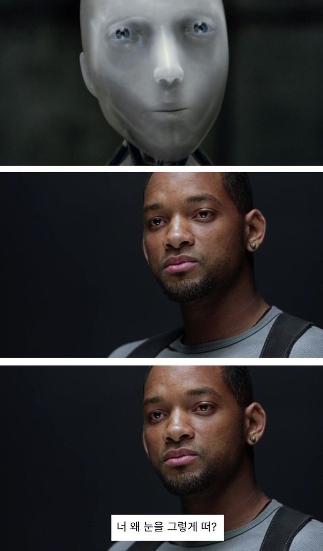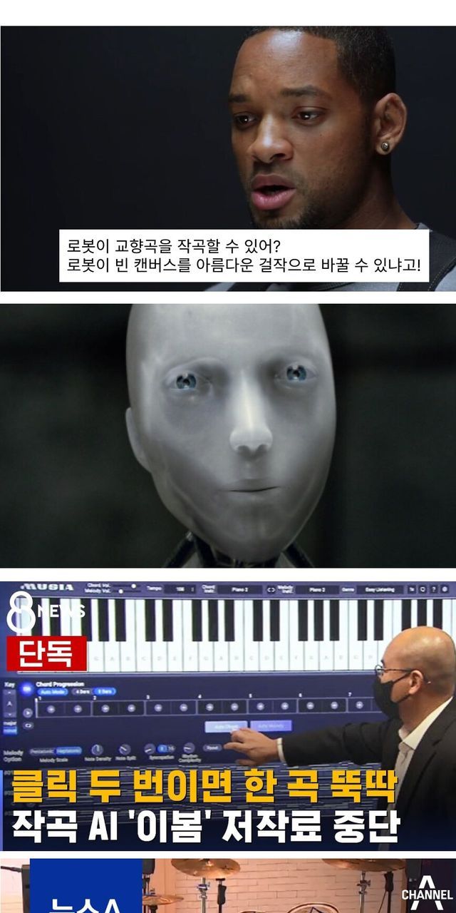 이미지에는 인간과 거의 구분되지 않는 인공지능의 얼굴과 함께, 영화 <아이, 로봇> 을 떠올리게 하는 장면들이 교차해 등장한다. 과거에는 스크린 속 상상에 불과했던 ‘창작하는 AI’가 이제는 현실에서 상을 받고, 평가를 받는 존재가 됐다는 점이 강조된다. 아이,>