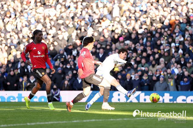 후반전 들어 리즈가 선제골을 만들었다. 후반 16분 파스칼 스트라위크가 걷어낸 공을 에이든 헤븐이 따라갔으나, 브렌던 애런슨이 스피드 경쟁에서 이기며 공을 잡았다. 애런슨이 지체하지 않고 날린 왼발 슈팅이 그대로 맨유 골문을 뚫었다.