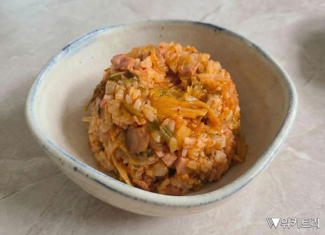 레시피를 바탕으로 실제 만든 김치볶음밥. 기호에 따라 스팸 등을 추가했다.