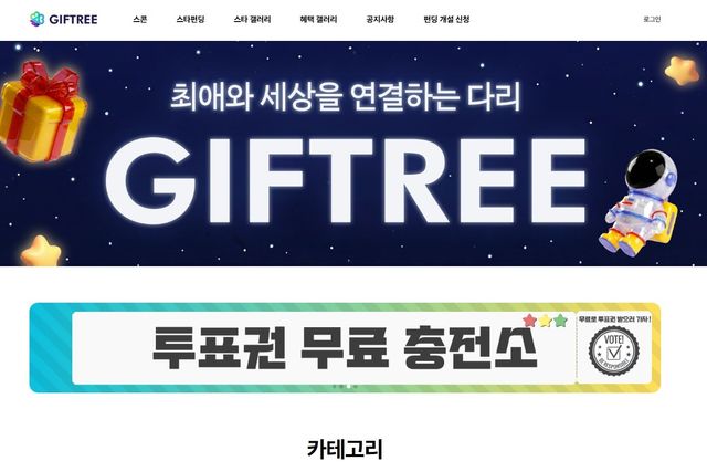 한편, 기프트리는 포털에 '기프트리'를 검색하여 쉽게 접속할 수 있으며 네이버, 카카오 아이디를 통해 누구나 간편하게 가입할 수 있다. 기사 읽기, 광고 보기와 같이 간단한 미션을 수행하면 하루 최대 74장의 투표권을 획득할 수 있다.