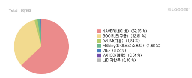 이 밖에 줌과 야후 등 다른 검색 사이트는 점유율 1%를 넘기지 못했다.