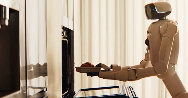 LG 클로이드가 크루아상을 오븐에 넣으며 식사를 준비하는 모습 / LG전자 뉴스룸