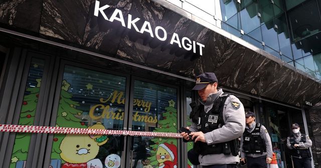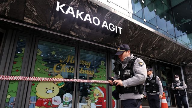 지난해 12월 15일 경기 성남시 분당구 카카오 판교 아지트에서 경찰 관계자들이 건물을 통제하고 있다. 이날 카카오 사옥에 폭발물을 설치했다는 협박성 메시지가 접수돼 카카오는 전 직원을 재택근무로 긴급 전환했다. / 뉴스1