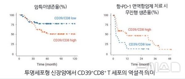연구 결과는 국제 학술지 '셀 리포츠 메디신'(Cell Reports Medicine) 최신호에 '투명세포 신세포암의 CD39⁺CD8⁺ T 세포: 종양 특이성과 면역억제의 이중적 역할' 제목으로 게재됐다.