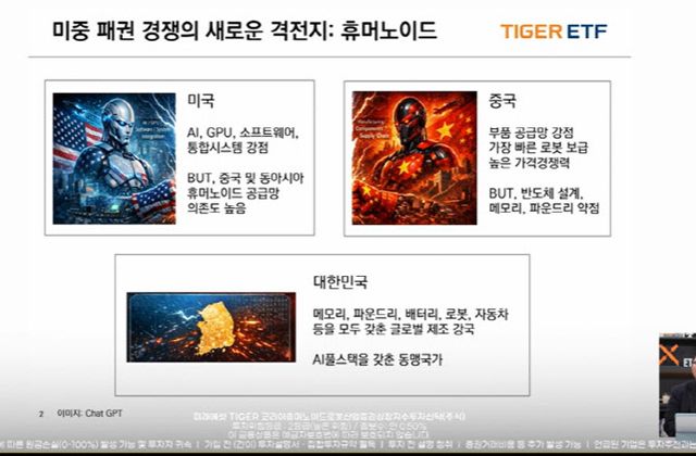 정 본부장은 이 ETF의 가장 큰 특징으로 ‘순수(Pure)’ 전략을 꼽았다. 그는 “기존 로봇 ETF와 달리 휴머노이드 사업 비중이 미미한 일반 IT·플랫폼 기업은 제외하거나 비중을 최소화했다”며 “휴머노이드 로봇이 실제로 판매될 때 즉각적으로 매출이 발생하는 기업들만 선별했다”고 설명했다.
