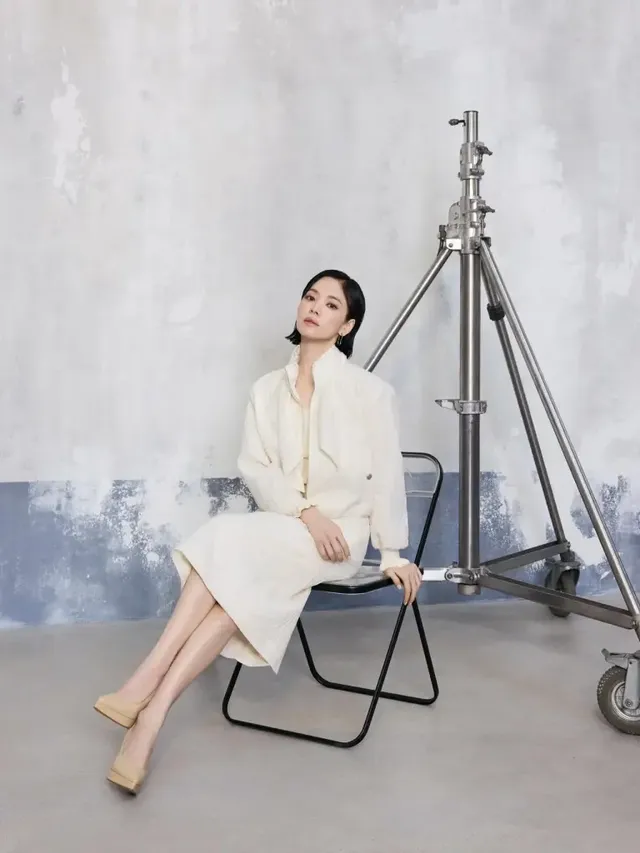 빈티지한 벽 앞에서도 송혜교의 아우라는 가려지지 않는다. 마치 구름을 직조해 만든 듯한 입체적 텍스처의 화이트 셋업은 그녀의 숏컷과 만나 극강의 세련미를 뿜어낸다. 자칫 부해 보일 수 있는 화이트 컬러지만, '송혜교 핏' 앞에서는 그저 구조적인 미학일 뿐이다. 무심하게 꼬아 내린 다리 라인과 스킨톤 힐의 조합은 다리 길이를 무한대로 확장시키는 센스를 보여준다.