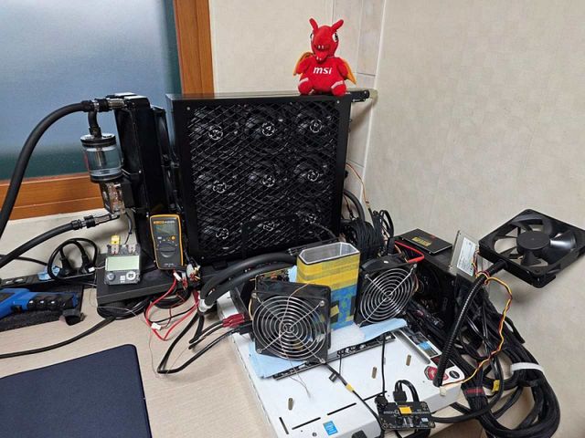 오버클러커는 MSI로부터 Lightning Z PCB 사용 승인을 받으면서, 본격적인 기록 경쟁이 시작됐다. 핵심은 상식을 벗어난 전원 설계다. Lightning Z는 무려 40페이즈 VRM과 듀얼 16핀 전원 커넥터를 갖춘 구조로, 순수 오버클럭을 위해 설계됐다.