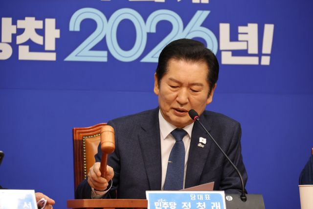 정청래 더불어민주당 대표가 "민주당은 제2차 종합특검과 통일교·신천지 특검을 속도감 있게 추진해 2026년을 완전한 내란청산의 원년으로 만들겠다"고 재차 피력했다.