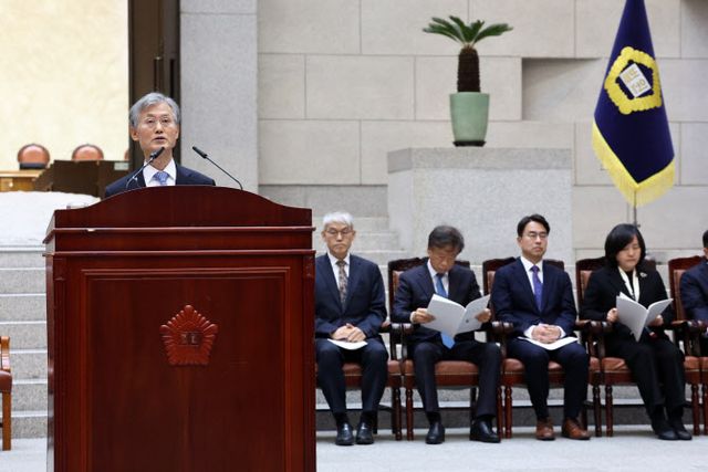 “최근 사법부를 향해 제기되고 있는 여러 우려와 질책 하나하나를 엄중하게 받아들이고 이를 성찰과 변화의 계기로 삼고자 한다.”(조희대 대법원장)