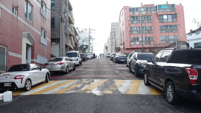 5일 오전 제주시 이도동의 경사진 도로에 차량들이 주차돼 있다. 양유리기자