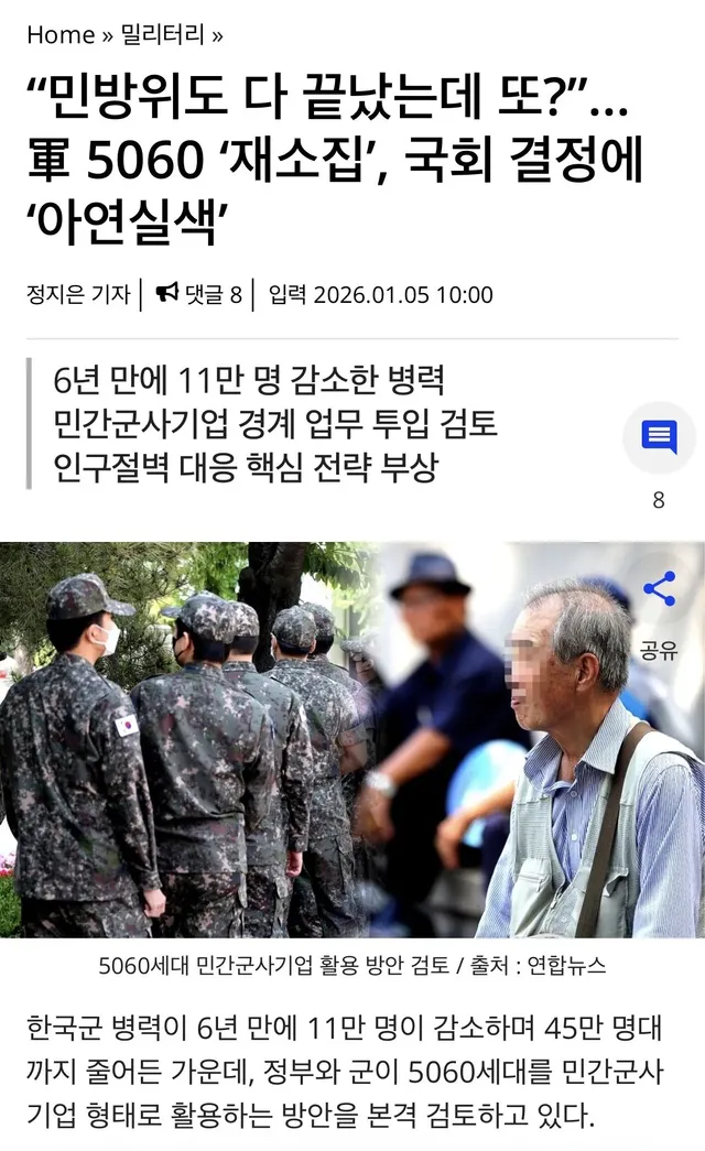 민간군사기업 PMC 형태로 고용해서 경계 근무에 투입하는걸 고려하고 있다고 함.