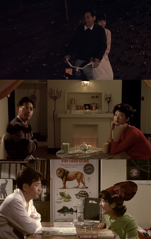 사진 속에는 송선미와 고 안성기의 젊은 시절 모습이 담겨 있다. 두 사람은 영화에서 함께 호흡을 맞췄다.