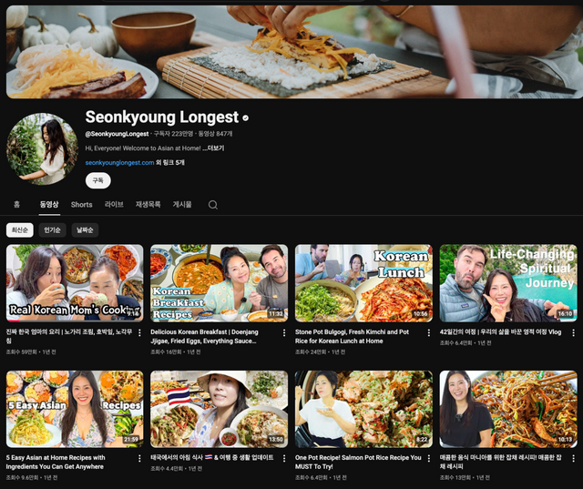 99만 구독자를 가진 안성재 셰프와 13만 구독자 정지선, 60만 구독자 최강록 등 〈흑백요리사〉 시리즈 출연자 중에는 유튜브에서도 활약 중인 인물이 많은데요. 가장 높은 구독자 수를 보유한 이는 시즌1의 선경 롱게스트입니다. 그는 13년차 1세대 요리 유튜버로, 2009년 미국으로 이민 간 직후 푸드네트워크의 프로그램에 프로그램에 출연하며 정식으로 요리를 배우기 시작했습니다. 현재는 아시아 푸드 쇼이자 웹사이트인 '아시안 앳 홈'에서 제작한 유튜브 콘텐츠를 통해 220만에 달하는 구독자를 보유 중입니다. 다만 그는 〈흑백요리사〉 출연으로 구독자 일부를 잃기도 했는데요. 시즌1 출연 당시 최강록, 조은주 셰프 둥과 요리의 방향 등을 두고 이견을 드러내던 중 잠시 시청자들에게 미운털이 박힌 적이 있습니다. 악플 세례 탓에 큰 스트레스를 받고 있다고 토로한 적도 있고요. 그렇지만 그의 채널에 방문하면 어머니와 오손도손 이야기를 나누며 술잔을 기울이는 모습, 남편과 함께 산티아고 순례길을 떠나는 광경 등 그의 입체적인 면모가 충분히 드러납니다.