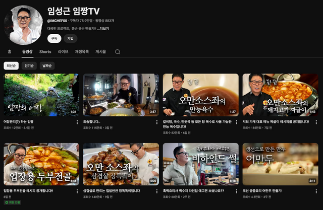 임성근 셰프는 특유의 허세 가득하지만 밉지 않은 행동들로 화제가 된 출연자입니다. 소스를 만들 때 계량을 거의 하지 않고 통째로 붓거나 대선배인 후덕죽 셰프의 중식도를 가져다 마늘을 으깨는 데 사용하는 등 기행을 보였지만 결과물은 언제나 맛을 보장하기 때문에 호평을 받았습니다. 10년 전 운영하던 가게가 화재로 3층까지 전소되는 사고를 겪고 Olive 〈한식대첩3〉에 출연, "반드시 우승해야 한다"라는 발언 이후 실제 우승을 차지한 서사로 그 호감이 더해졌는데요. 이런 임성근 셰프의 본 모습을 여과 없이 느낄 수 있는 곳이 그의 유튜브 채널 ‘임짱TV’입니다. 구독자 애칭부터 ‘똥손이들’이며, 채널 소개글에는 ‘대국민 프로젝트, 똥손 금손 만들기’라고 적어두며 정체성을 분명히 했죠. 3년 동안 800개가 넘는 영상을 업로드하며 열심히 채널을 운영해왔지만 구독자 수는 30만 명 대에 머물렀는데요. 시즌2에서의 활약을 통해 구독자 수가 2.5배 증가하며 엄청난 성장세를 보이고 있어요. 요리만큼 눈길을 끄는 그의 주특기는 구독자들과의 소통. 한 08년생 구독자가 "친구 하자"라고 단 댓글에 바로 “좋아요 야 친구야”라는 코멘트를 다는가 하면, 첫 댓글을 다는 구독자에게는 보이스 리플을 달아주기도 해요.