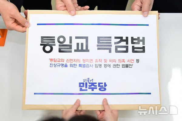 민주당은 통일교 특검 협상이 최종 결렬되면 단독 강행 처리도 불사하겠다는 입장이다. 여당 지도부 관계자는 뉴시스와 통화에서 "국민의힘과 특검 조사 대상 문제에서 합의가 이뤄지지 않으면 단독 처리하는 방안도 배제하지 않고 있다"고 했다.