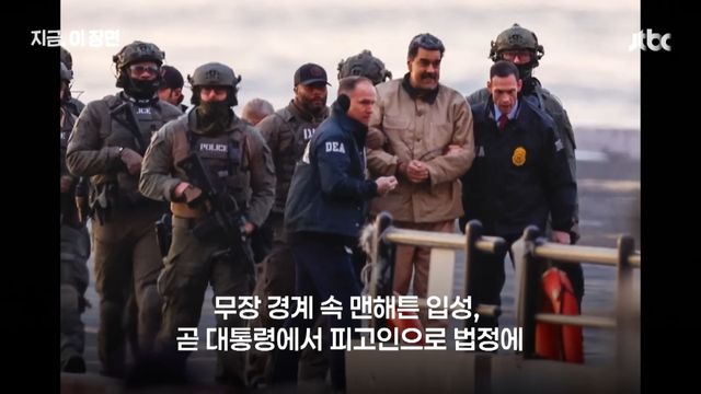 마두로 부부가 법정에 선 건 체포 이틀 만이다. 보도에 따르면 두 사람은 지난 3일 새벽 베네수엘라 수도 카라카스에서 미군과 미국 당국의 전격 작전으로 생포된 뒤 같은 날 미국 뉴욕으로 옮겨졌다. 이후 브루클린의 연방 구치소에 수감돼 있다가 5일 오전 법원으로 이송됐다. 현장에는 삼엄한 경비가 깔렸고 이동 과정에는 헬기와 장갑 차량이 동원됐다.