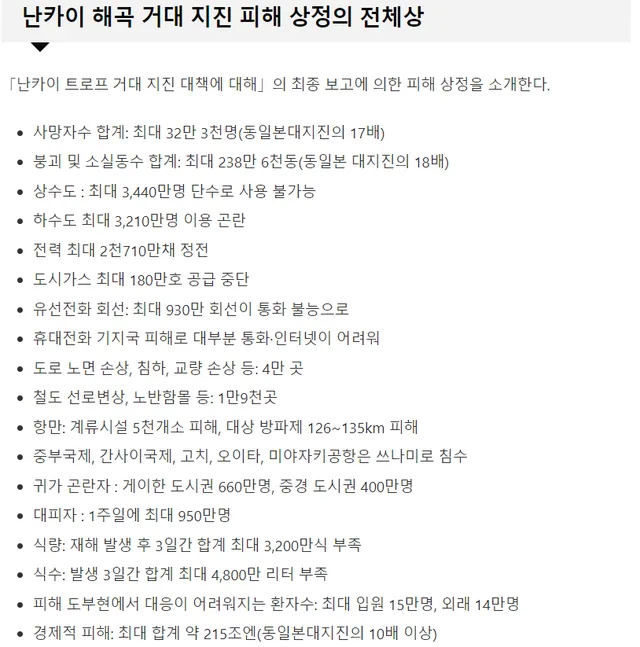 그래서 예전에 난카이 트로프 대지진 주의보 내렸을때 일본인들이 대거 사재기하고 난리났음