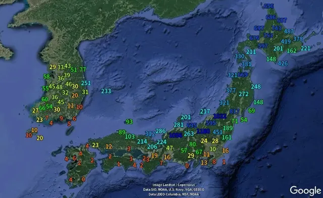 2번째 4번째 짤보면 홋카이도 도호쿠 호쿠리쿠 중심으로
