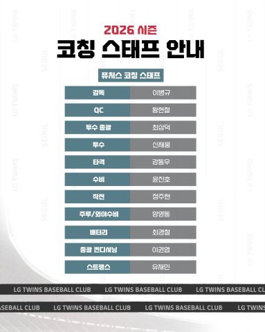 LG 트윈스가 2026시즌 코치 보직을 확정해 6일 발표했다.