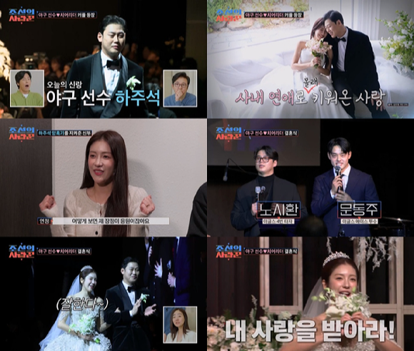 방송은 류현진, 정은원, 박찬호, 이정후 등 야구계 스타들이 총출동한 결혼식 현장을 공개하며 시작됐다. ‘야구장 3대 여신’으로 불리는 김연정은 “원래는 만나면 안 되는 사이라고 생각했다”고 말하며 5년간 비밀로 이어온 연애사를 털어놨다.