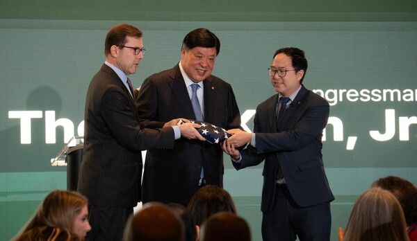 (왼쪽부터) 토마스 킨 주니어(Thomas Kean Jr.) 연방 뉴저지 하원의원, 서정진 셀트리온그룹 회장, 앤디 김(Andy Kim) 연방 뉴저지 상원의원 /셀트리온 제공