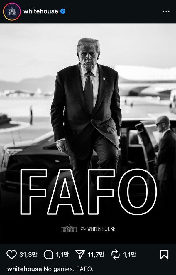 해당 사진 중앙에는 'FAFO'라는 문구가 크게 삽입됐다.