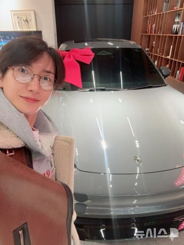 사진 속 이특은 리본이 장식된 신차 옆에 서서 포즈를 취하는 모습이 담겼다.