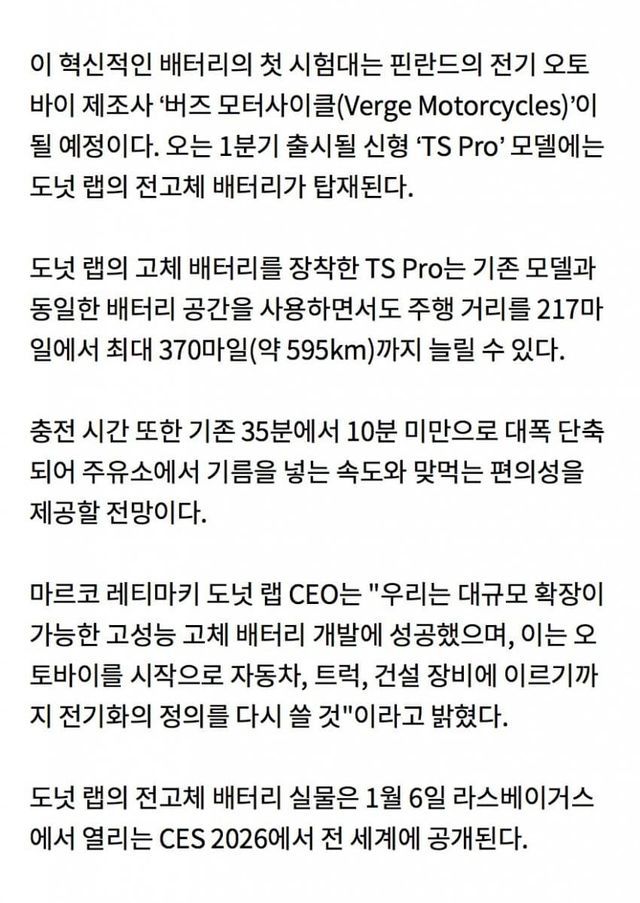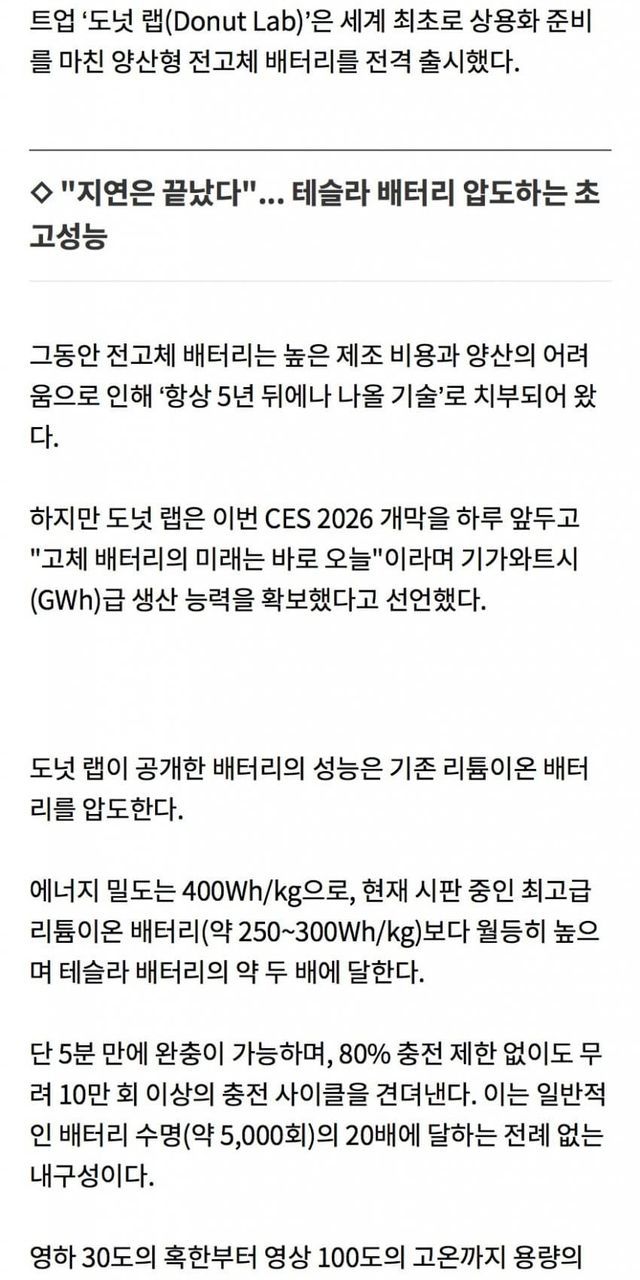 “꿈의 배터리 현실이 되다”... 세계 최초 ‘양산형 전고체 배터리’ 출시
