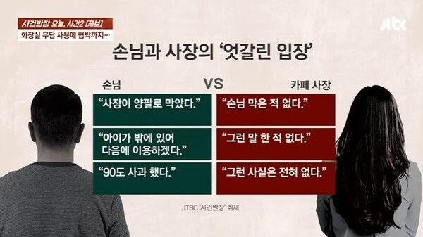 뉴시스 보도에 따르면, 지난 5일 JTBC '사건반장'에 따르면 최근 일명 '카페 감금 사건'으로 온라인에서 화제가 된 글에 대해 해당 카페 사장이 반박했다.
