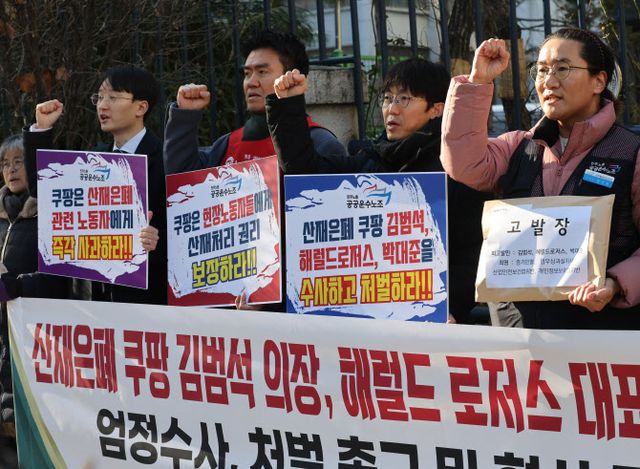 민주노총 공공운수노조와 ‘쿠팡 노동자의 건강한 노동과 인권을 위한 대책위’는 6일 오전 서울 서대문구 경찰청에서 김 의장과 로저스 대표, 박대준 전 쿠팡 대표를 증거인멸 및 업무상 과실치사, 산업안전보건법 위반 등 혐의로 고발했다.