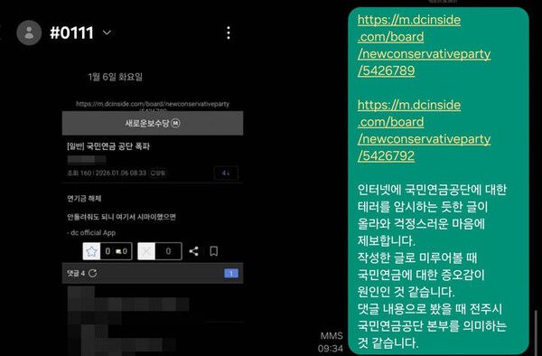 뉴시스 보도에 따르면, 6일 전북경찰청에 따르면 이날 오전 8시33분께 온라인 커뮤니티 '디시인사이드'에 "국민연금 공단 폭파"라는 제목의 게시 글이 올라왔다.