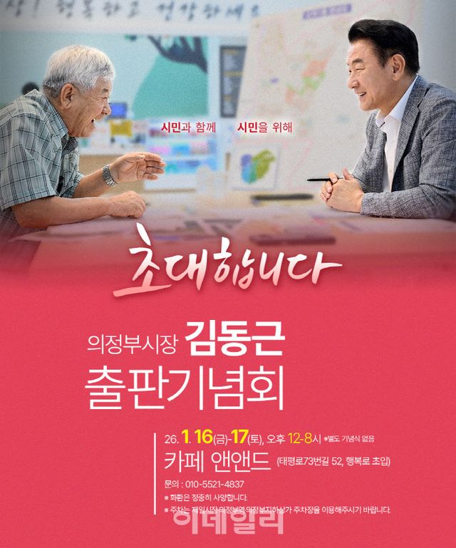 6일 출판사 더포스트에 따르면 김 시장은 오는 16일부터 이틀 간 의정부동에 소재한 ‘카페 앤앤드’(태평로73번길 52)에서 출판기념회를 연다.