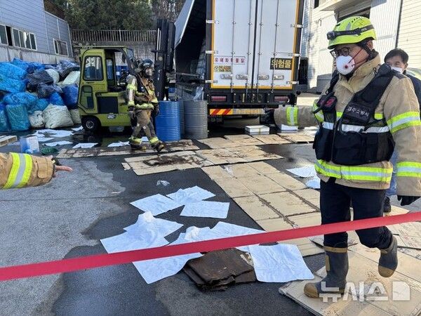 6일 오전 11시34분께 경북 경주시 외동읍 구어리의 한 자동차 부품 공장에서 화물차에 적재된 수산화칼륨(45%)이 누출돼 3명이 다쳤다.