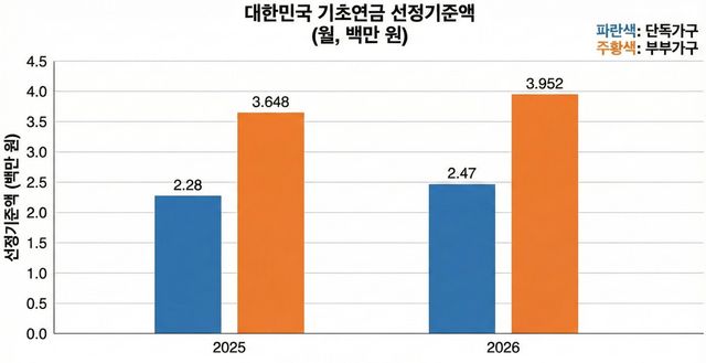 2026년 적용될 선정 기준액은 2025년 대비 단독가구 기준 19만 원, 부부 가구 기준 30만 4,000원 올랐다. 선정기준액은 65세 이상 노인 중 기초연금 수급자가 70% 수준을 유지할 수 있도록 정부가 소득, 재산, 생활 실태, 물가상승률 등을 종합적으로 고려해 설정하는 기준선이다. 이번 인상 폭은 노인 계층의 전반적인 소득과 자산 수준 변화를 반영한 결과다.