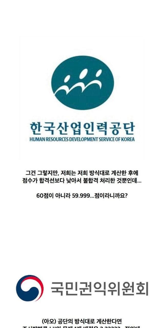 59.9999.....점은 60점이 아니니까 불합격입니다
