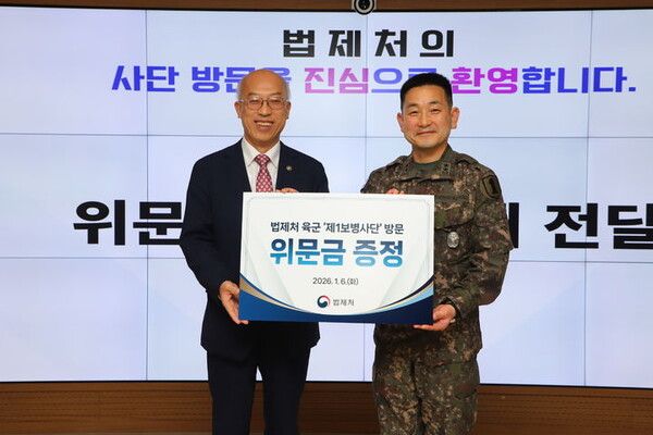 법제처는 조원철 법제처장이 6일 경기도 파주시에 위치한 육군 제1보병사단을 방문해 위문금을 전달했다고 밝혔다.